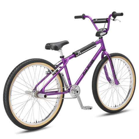 The 26" OM Flyer is a bike with some serious history. The "OM" in the name stands for "Old Man," which was the nickname of SE Bikes founder, Scot Breithaupt. It's a bike that pays homage to a true legend and pioneer in BMX, but is also ready to be ridden at today’s level of riding. The 100% Cr-Mo frame is a pure classic, giving you the feel of a real steel BMX bike. The unique SE Mohawk flip flop hubs and double-wall rims roll on 26 x 2.4" Bozack tires, which provide a ride that is as smooth as it gets. And the new Scot Enterprises top-load stem adds a touch of retro flair, while the Oakley B-1B grips give the bike an added touch of awesome authenticity.