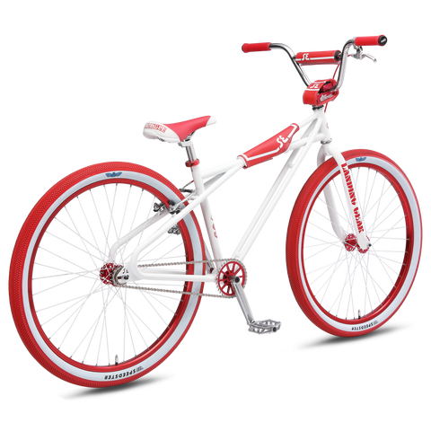 The 29" Quadangle Looptail is a true classic and one of the most sought after SE bikes ever made! The frame is built with100% Cr-Mo steel tubing and features a unique “quad angle” frame shape and a classic double downtube—a legendary design created by SE and instantly recognizable. The sealed bearing SE Mohawk hubs paired with double-wall rims provide a smooth ride, and the 29" x 2.10" Speedster tires will roll fast when you’re putting in the miles. The new SE Captive seat (with custom bottle opener brace) provides a secure and comfortable feel for wheelies or just cruising along. With authentic ODI Longneck grips and an SE Racing padset, this bike screams classic radness.